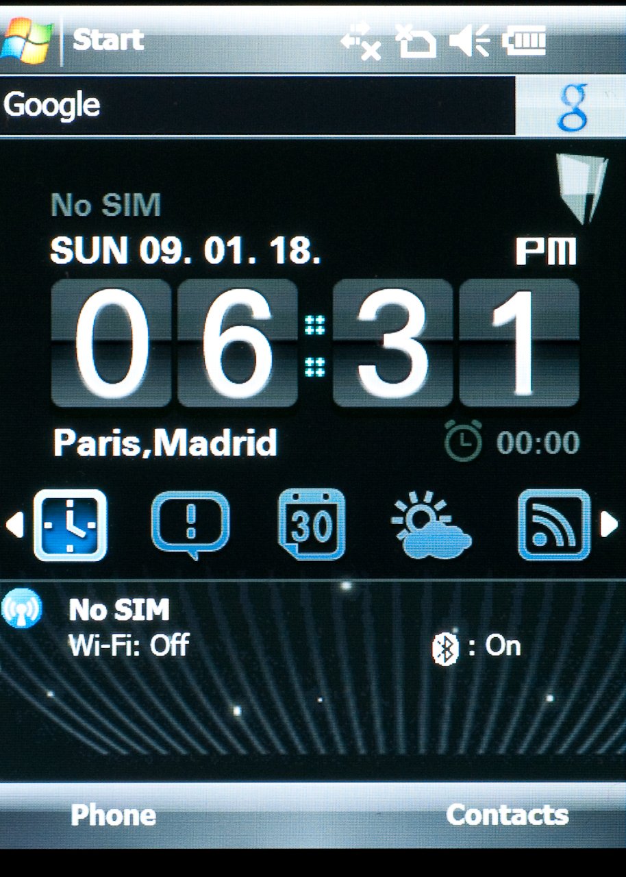 Az első szembetűnő újítás a Today képernyő cseréje. Az ASUS-féle MultiHome több üzemmódban is használható, így választhatunk, hogy csak egy órát (Life), egy órát, egyszerű menüt és a kapcsolat-managert (Original) vagy egy világórát és egyszerű menüt (Business) szeretnénk látni.