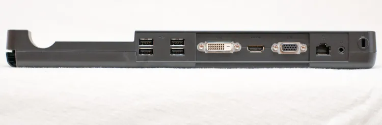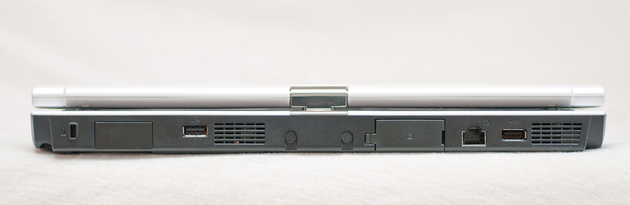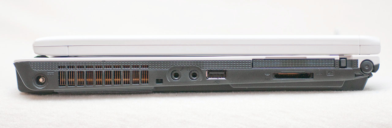 Ahhoz képest, hogy 13,3”-as gépről van szó, a T1010 elég jól bővíthető – szinte alig maradt olyan felület az oldalain, ahova ne került volna valami csatlakozó. Szokásos körutunkat elkezdve, a bal oldalon először a toll tartójába botlunk, majd az ExpressCard bővítőhely következik, alatta az SD/MMC és MS formátumokkal kompatibilis kártyaolvasóval. Erre az oldalra került a három USB port egyike, amely így könnyen elérhető, valamint a két hangcsatlakozó, a hűtőrendszer kivezetése és a tápcsatlakozó is. A hátoldalon egy újabb USB port, az Ethernet-adapter csatlakozója, egy kinyitható gumifedél mögött a VGA-kimenet, majd egy újabb USB port található. Jobbra egyedül az optikai meghajtó került, illetve a két Kensington-nyílás egyike.