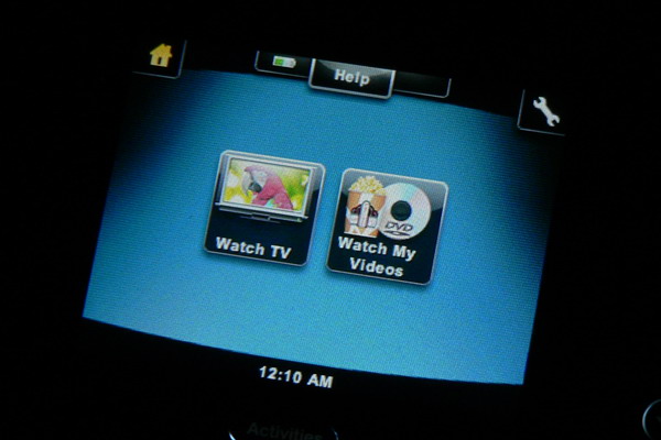 Az adott cselekvést a bal felső sarokban lévő hardveres kikapcsoló gombbal tudjuk leállítani, ilyenkor a Harmony szépen kikapcsolja az eszközöket. Átválthatunk persze másik cselekvésre is: az Activites gombbal menjünk a főmenübe.