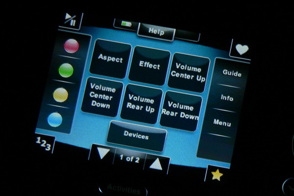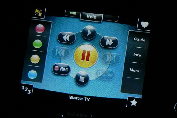 Ha kézbe vesszük a távirányítót, a beépített szenzorok érzékelik a mozgást, és aktiválják a kontrollert. A főképernyő a beprogramozott cselekvéseket mutatja. Ide bármikor visszatérhetünk, ha megnyomjuk az Activites gombot. Elsőként tévét szerettünk volna nézni, így megérintettük a Watch TV gombot a kijelzőn. A tévé bekapcsolt, átváltott HDMI-re, az STB szintén feléledt, az erősítő is aktivizálta magát és átváltott a megfelelő bementre, eddig minden oké. A csatornaváltásnál az STB, hangerő-szabályozásnál az erősítő, a képarány megváltoztatásakor a tévé reagált, ez is rendben. A „vissza” gomb viszont nem működött. Semmit nem csinált, ami azért volt baj, mert az STB menüjében így például nem tudunk visszalépni. A Logitech konfigurációs szoftverében gyorsan kiderült, mi okozza a gondot: ehhez a gombhoz nem volt funkció hozzárendelve.