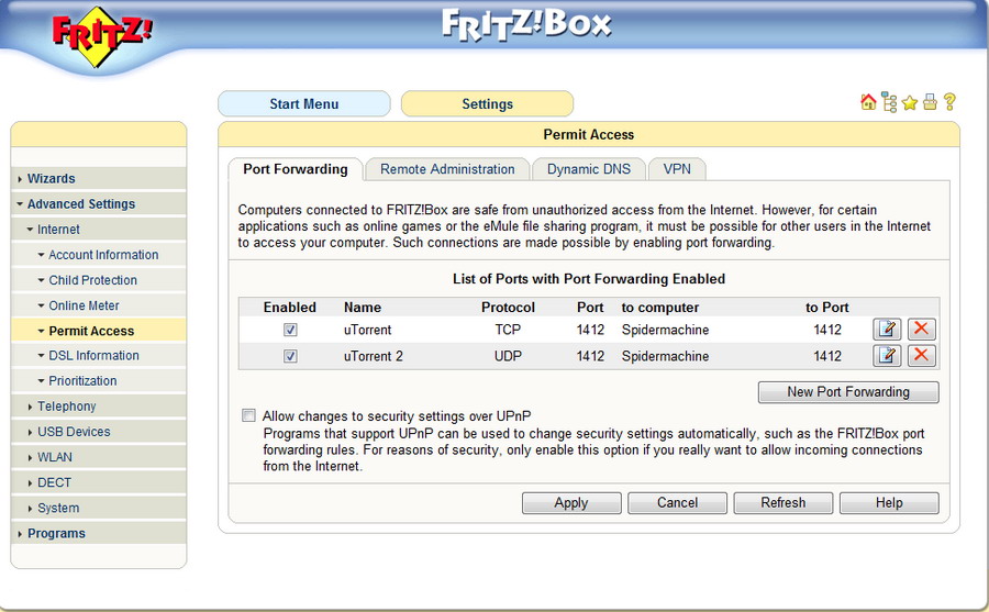Korábban már említettük, hogy a hátlapra négy 100 Mbites LAN csatlakozó került. Ebből az első WAN portként is üzemel, ha valamilyen oknál fogva nem a belső ADSL modemet szeretnénk használni, vagy, ha VDSL-/kábelmodemet használunk. LAN oldalon érdemes kiemelni a beépített tűzfalat, amely alapértelmezés szerint csak a szokásos portokat (http, e-mail, ftp) nyitja meg. A webes konfigurációs felület segítségével természetesen könnyedén engedélyezhetjük a torrent kliens vagy a játékok számára szükséges portokat is.