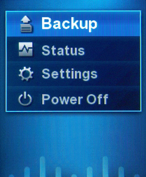 Az LCD kijelző egyrészt jól mutat, másrészt viszont hasznos is. Megnézhetjük vele a NAS IP-címét, az adatmentést pedig központilag is elindíthatjuk. Ilyenkor a hálózatra csatlakozott, valamennyi működő gépen elindul a backup. Emellett megnézhetjük mekkora tárterület foglalt, valamint azt is, hogy a jelenleg tárolt adatokból a zenék, fotók, videók és egyéb adatok hogyan veszik ki a részüket.