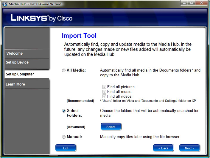 A Linksys Media Importer és az NTI Shadow alapszoftver, egyikük sem tud semmi extrát, viszont a feladatát – otthoni környezetben – mindkettő elég jól ellátja.