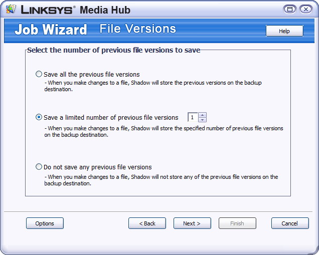 Az NTI Shadow nemcsak a NAS-ra, hanem bárhová tud a kiválasztott fájlokról tükrözést készíteni. Job alapú program, azaz különféle mentési feladatokat állíthatunk be, és futtathatunk le. A szoftver semmi extrát (tömörítés, titkosítás) nem nyújt, a fájlok kiválasztása mellett csupán azt adhatjuk meg, hogy a korábbi fájlverziókból hányat tartson meg, illetve, hogy a backupból is törlődjék-e az a fájl, amit a PC-n a kukába dobunk.