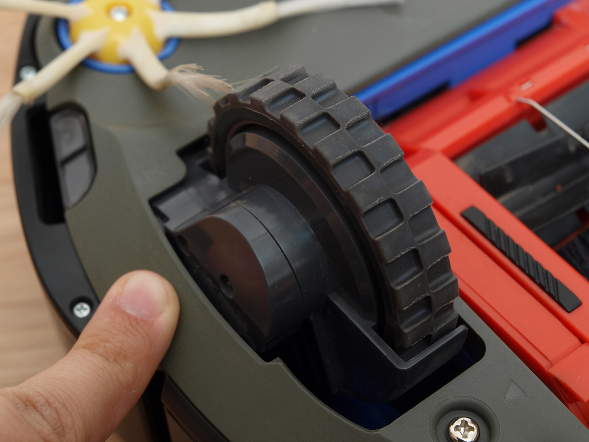 iRobot Roomba 560 első kerékiRobot Roomba 560 hajtott kerék kiemelkedveiRobot Roomba 560 hajtott kerék normál állapotban