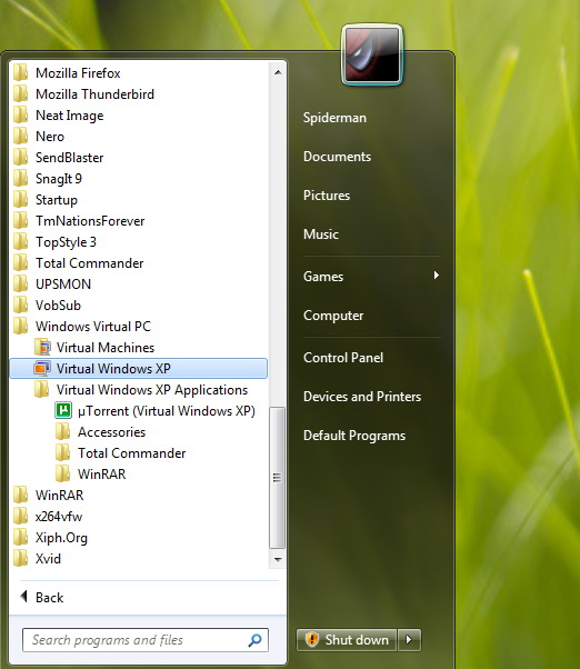 Az XPM igazi extrája az egyéb virtualizációs szoftverekkel összevetve az, hogy a virtuális gépre telepített alkalmazások megjelennek a Windows 7 Start menüjében, és el is indíthatók onnan. (Ha valamint nem kell telepíteni, akkor hozzunk létre egy, a programra mutató parancsikont és másoljuk be a virtuális gépen a C:Documents And SettingsAll UsersStart MenuPrograms mappába, hogy megjelenjen a Windows 7-ben is.)
