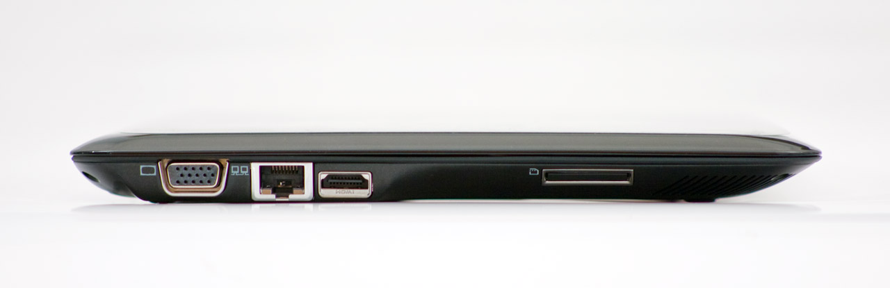 A szupervékony noteszgépek gyenge pontja általában a felszereltség, ugyanis kevés csatlakozó fér csak el a gép oldalára. Ezen a téren az MSI elég jó munkát végzett, az X340 bal oldalára ugyanis D-Sub, Ethernet, HDMI és kártyaolvasó, jobb oldalára pedig két USB port, a hangcsatlakozás és a táp bemenete került.