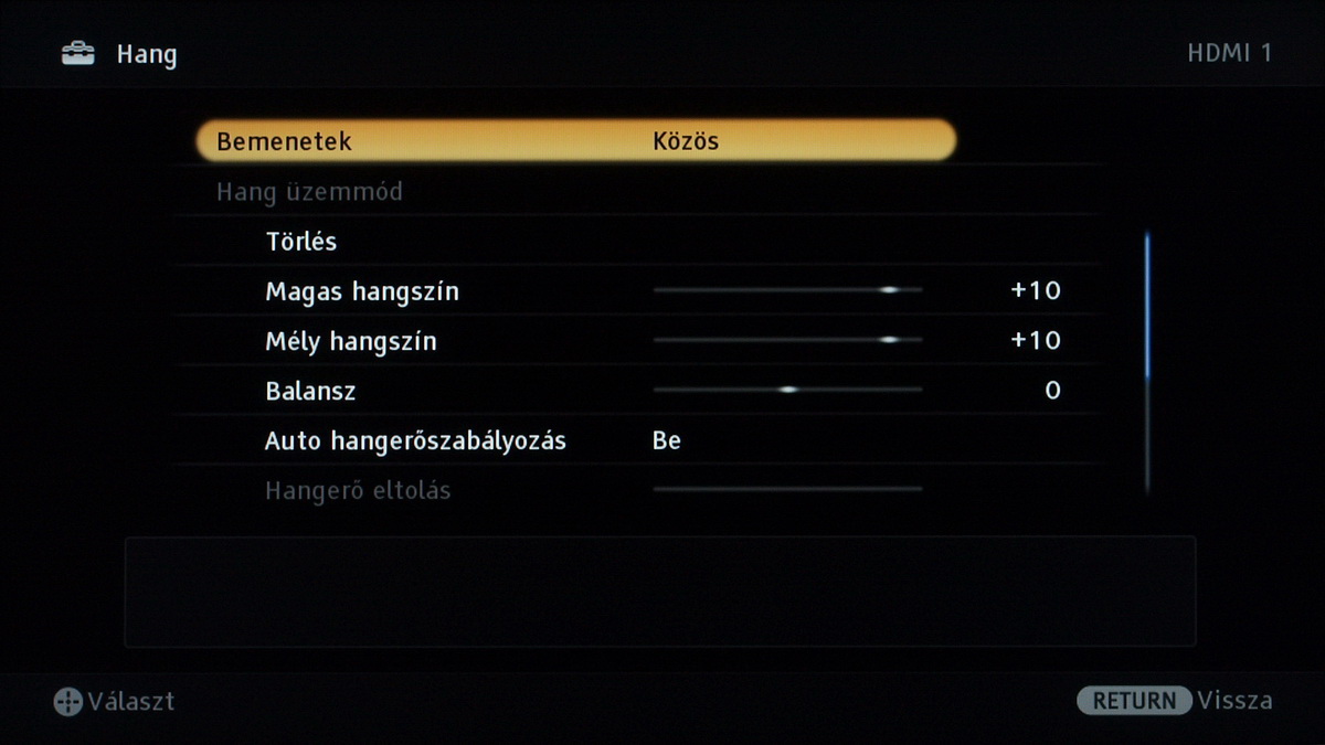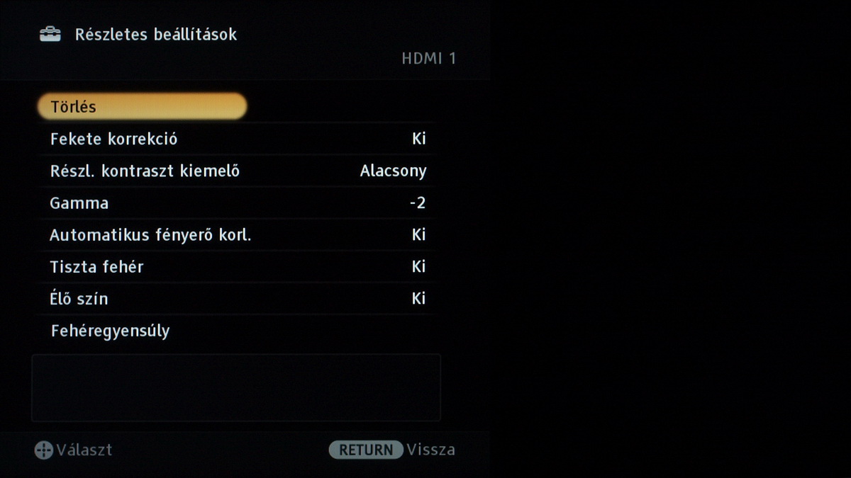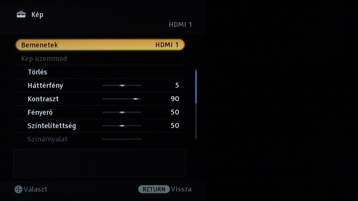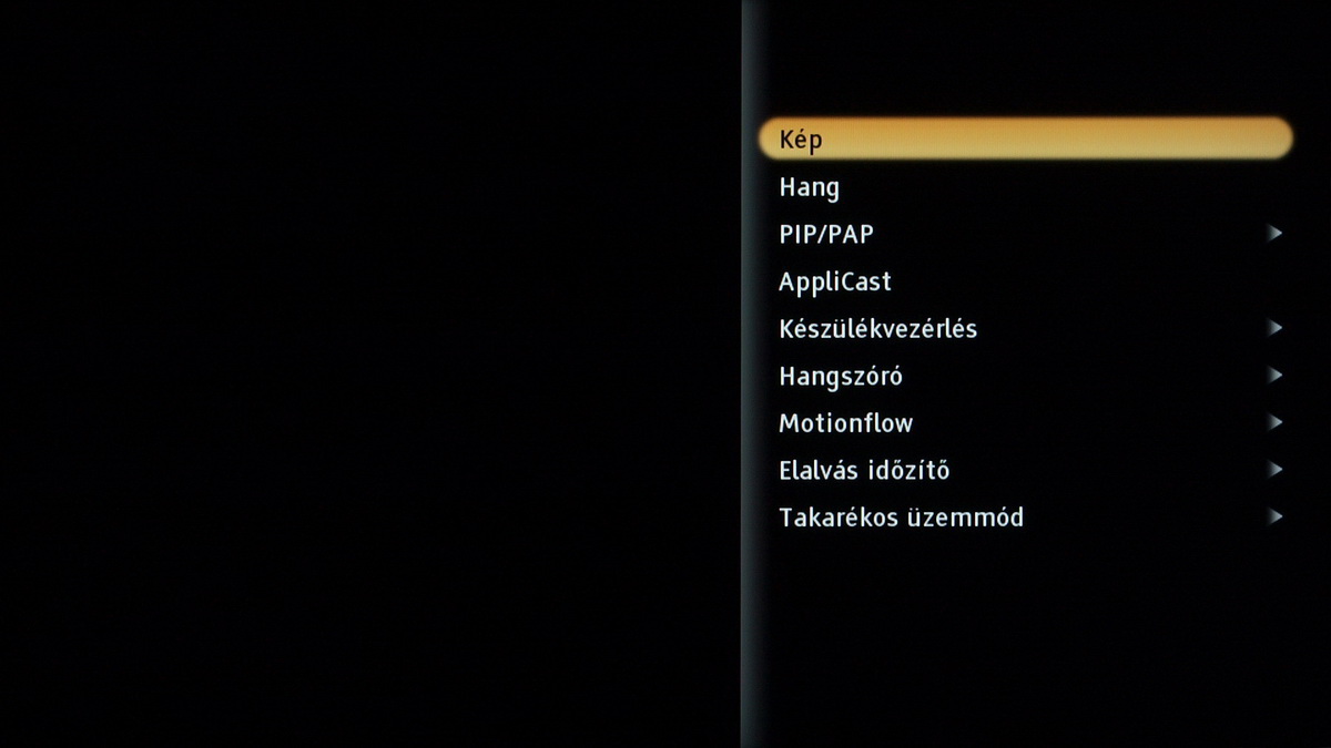 Szerencsére több opció külön gombot is kapott, így a képjellemzők és az Applicast a távirányítóról közvetlenül is elérhetők. Emellett nekünk az sem tetszett, hogy egy csomó olyan beállítás van, ami nagyon körülményesen érhető csak el, valamint, hogy a menü az alsó-felső részen nem „fordul át”.