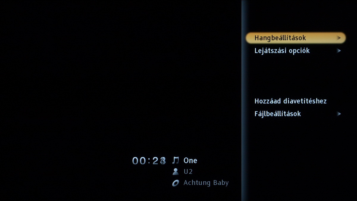 Ezek után nem meglepő, hogy a zenék közül csak az MP3 ment át a szűrőn, s emellett a választható opciók listája is elég szegényes (mint minden tévé esetében egyébként).