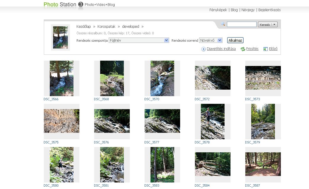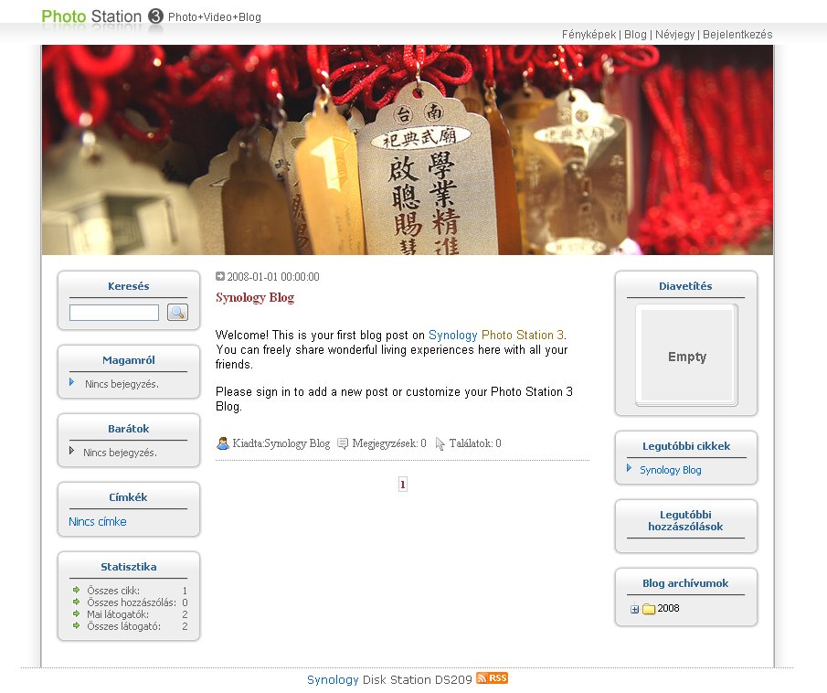 A különlegesebb szolgáltatások közé tartozik a Web Station, amely tulajdonképpen egy webszerver – PHP és MySQL támogatással. Ennek köszönhetően akár saját weboldalt is üzemeltethetünk a DS209 segítségével, amelyet a tűzfal/router/DDNS megfelelő beállításával természetesen az internet felől is láthatóvá tehetünk. Egyetlen DS209-on egyszerre legfeljebb 30 webhelyet „hostolhatunk”, persze ennyire valószínűleg nem lesz szükségünk. A következő webes szolgáltatást a Photo Station, amely egy online fotóalbum. Használatához egyszerűen csak fel kell másolnunk a képeket a NAS-on a photo névre hallgató könyvtárba, majd az interneten keresztül az általunk beállított címet beírva máris egy egyszerű netes fotóalbumot kapunk. Az előnézeti képek és a blogoldal generálása teljesen automatikus, gyakorlatilag a másoláson kívül nincs is más dolgunk.