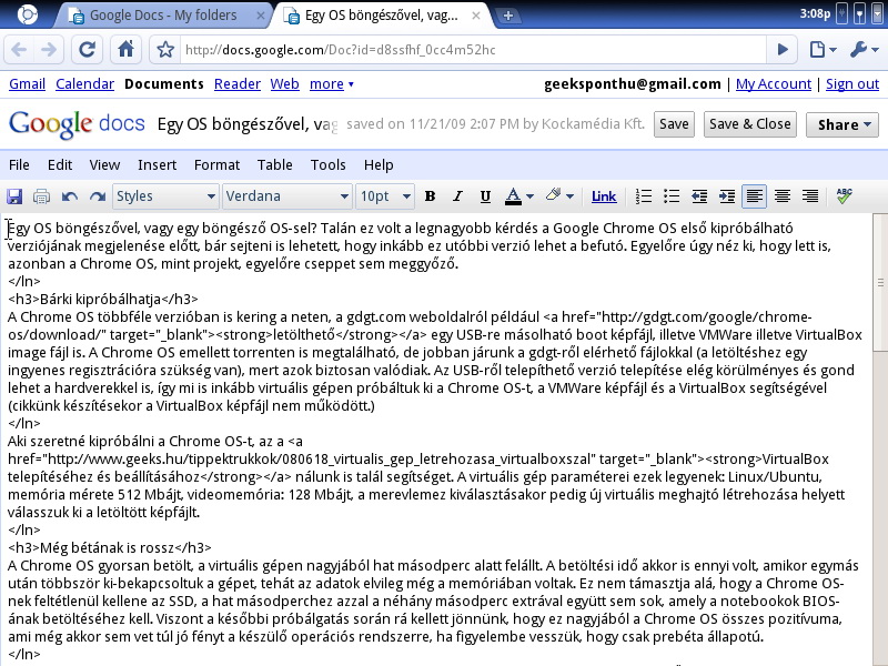 Kipróbáltuk: Google Chrome OS prebéta