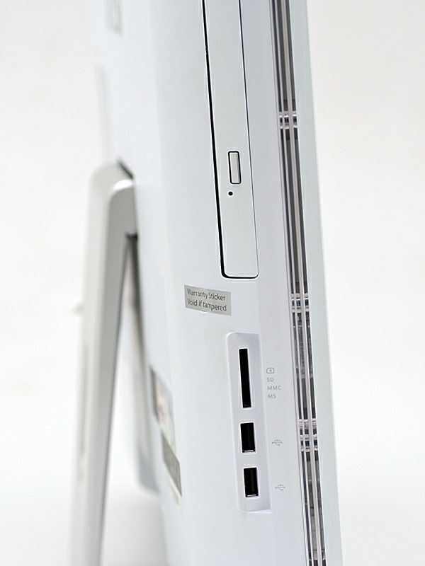 Bal oldalra került az optika meghajtó, további két USB port és egy SD/MMC/Memory Stick formátumokkal kompatibilis kártyaolvasó is.