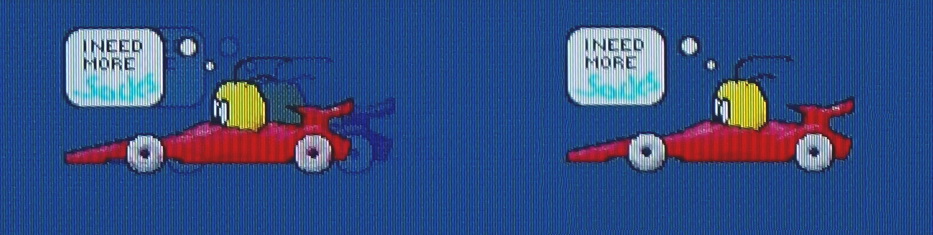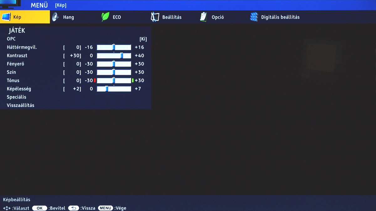 A HDMI bemenetek valamelyikét használva természetesen 1:1-es leképezést is választhatunk, így a PC vagy a játékkonzol képe tökéletesen jeleníthető meg a tévén. Fontos, hogy ebben az esetben a képélesítést vegyük le 0-ra, különben a betűk és ikonok széles csúnya lesz, a többi beállítás viszont maradhat. Egyébként az, hogy a tévé kevés képjavítót támogat, PC-vel és játékkonzollal való összekötésre nagyon is alkalmassá teszi; az input lagja ugyanis egészen minimális, 12-14 ms körüli értéket mértünk.