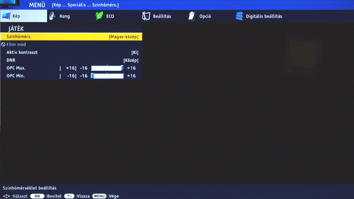 ▪ sokat kell szöszölni a jó beállítások megtaláláshoz ▪ kevés opció a menüben ▪ tükröződő panel |