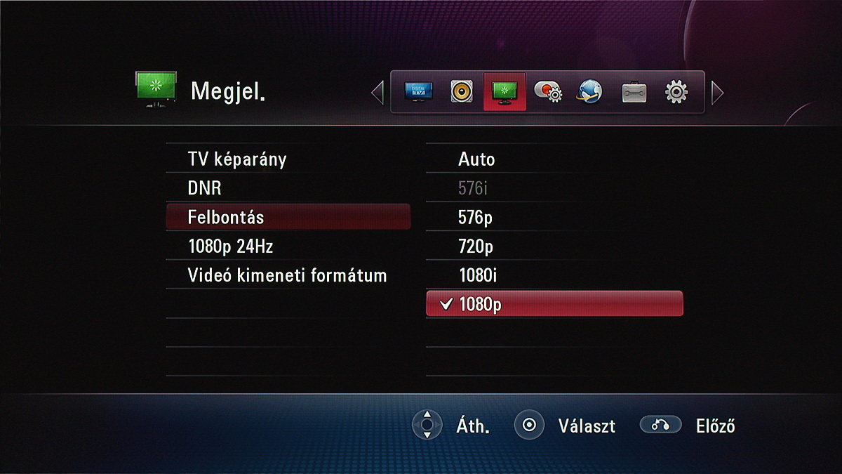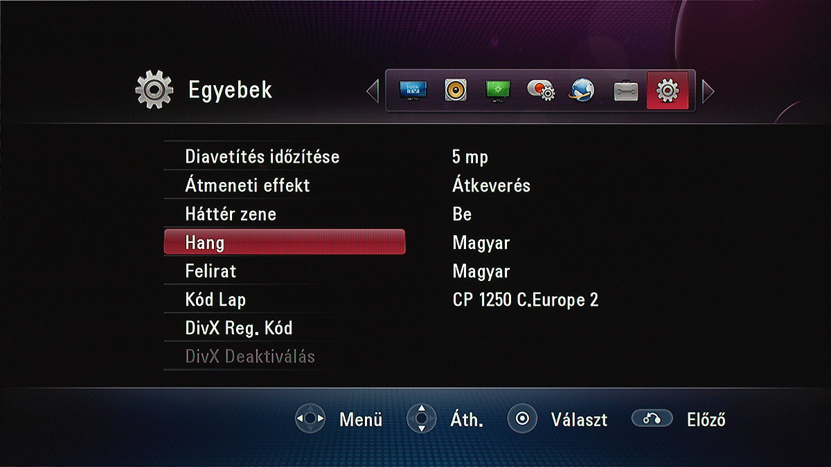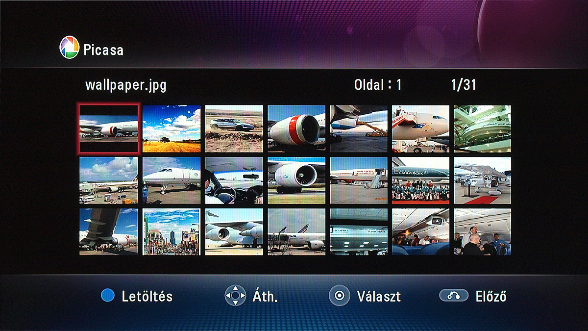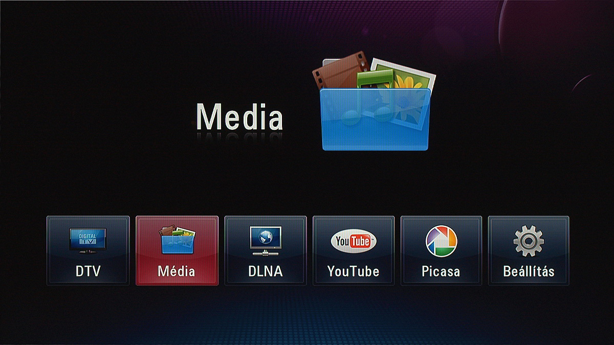 Jó a felépítése a főmenünek is, amelynek hat gombjával sorrendben a digitális tévé, a helyi médiafájlok, a DLNA kapcsolat segítségével elérhető fájlok, YouTube videok, Picasa albumok és a készülék beállításai érhetők el. Utóbbira ezúttal nem szeretnénk túl sok szót fecsérelni, egyrészt azért, mert a képekből kiderül, hogy milyen opciók állnak rendelkezésre, másrészt azért, mert a menü magyarul is tud, és minden opció elnevezése adja magát. Amit érdemes kiemelni, az a firmware frissítésének lehetősége (online kapcsolat esetén), valamint a 24p ismerete, amely – megfelelő tévével párosítva – lehetővé teszi az MKV fájlok kadenciahelyes lejátszását.
