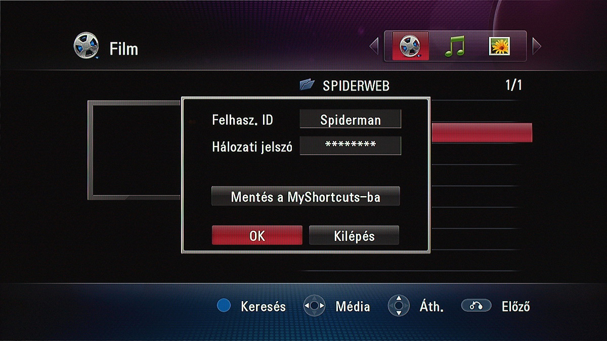 Filmlejátszás, hálózati funkciók