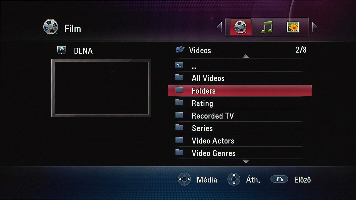 Az LG médiacentere a DLNA-t is ismeri, sőt, a DLNA a főmenüben külön menüpontot is kapott. Képekhez és zenelejátszáshoz csak ajánlani tudjuk (Windows 7-es PC, vagy más, DLNA-képes hardver szükséges!), filmekhez azonban nem, mert az MKV-kat például így nem tudjuk elérni. A hálózati lejátszás ezt leszámítva vezetékes kapcsolattal nagyon jól működik, a WiFi-vel viszont a szokásos gondunk akadt, nagyfelbontású MKV-kat már nem tudtuk vele átvinni – pedig az adatokat küldő gép és az MS450H egy szobában volt.