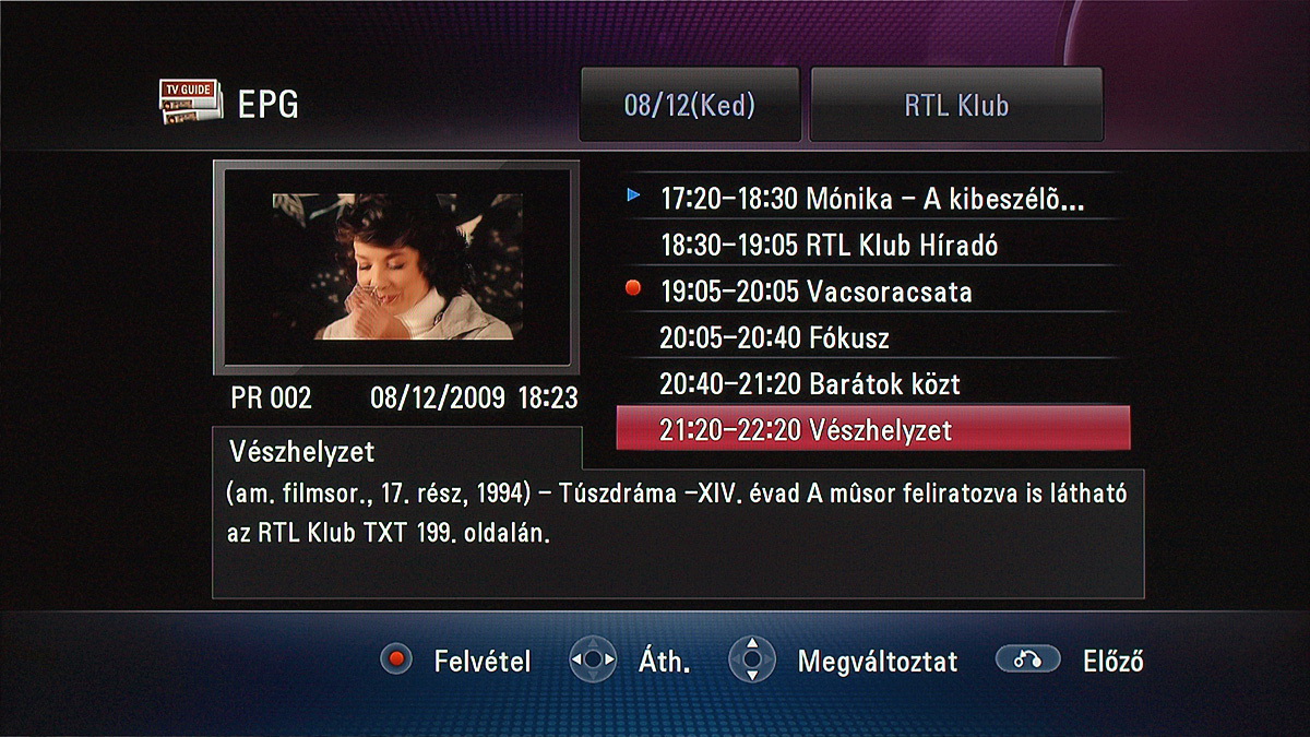 Az MS450H az EPG-t is kezeli, ez azonban elég nehezen használható, mert egyszerre csak egy adó műsora, azon belül is csupán hat cím látszik. Viszont, és talán ez a legfontosabb, működik vele a felvételi időzítő beprogramozása.