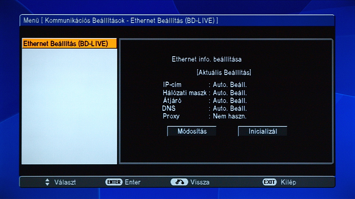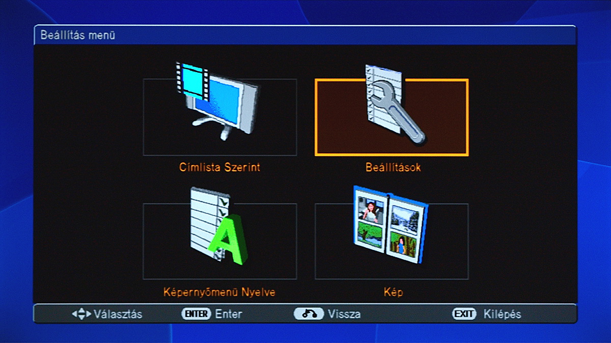 A BD-HP22S menürendszere nem tartozik a legmodernebbek közé, de ennek ellenére (vagy éppen ezért) jól átlátható. A főképernyő négy menüpontjával a címlistát, a beállításokat, a nyelvválasztó menüt és a fotóalbumot érhetjük el. Említésre méltó további lehetőségek csak a beállítások között találhatók, ám mivel a lejátszó túl sok extra funkciót nem kínál, eltévedni itt sem fogunk. Ráadásul optimális esetben itt elég mindent egyszer jól beállítani.