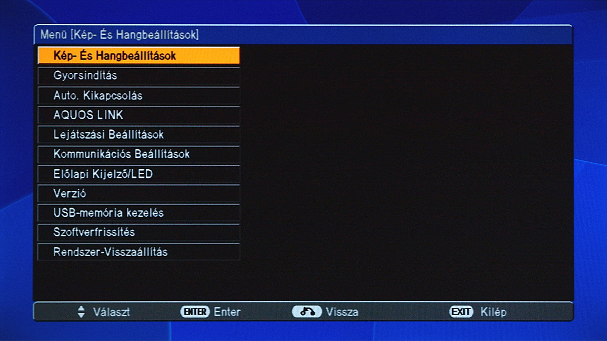 A lejátszó YPbPr kimeneten keresztül 1080i, HDMI kimeneten keresztül 1080p jel kiadására képes. Amennyiben a digitális csatlakozót használjuk, természetesen a 24p is választható. Ha szeretnénk, van mód a firmware frissítésére (csak USB stickről), Sharp tévék vezérlésre van AQUOS LINK, valamint ha a lejátszó közvetlenül a tévé alatt van, akkor az előlapi LED-et is kikapcsolhatjuk, így nem lesz zavaró a fénye. A menü kezelhetőségét a rendszer sebessége kicsit lerontja, és sajnos a lassúság általánosságban is jellemző a készülékre. Szokásos tesztlemezünk esetében a főmenü 39 másodperc alatt töltődött be, a film pedig 4 másodperc alatt indult el – ez összesen 43 másodperc, ami lassabb, mint a BD-HP21S esetében.