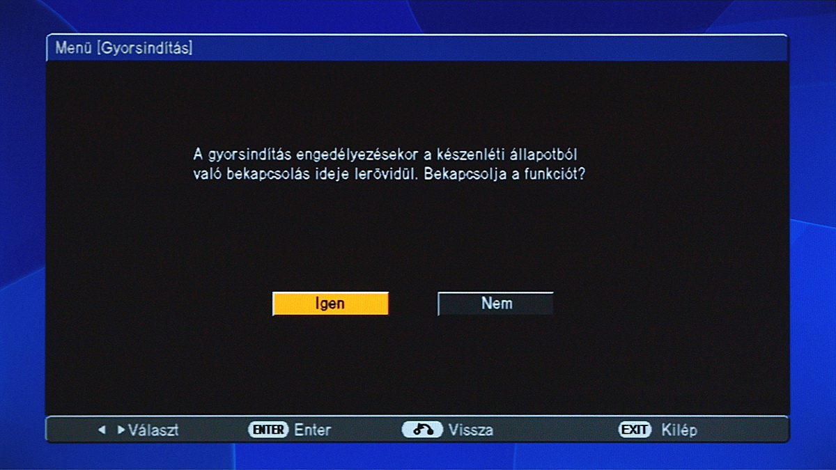 Bár a menüben van egy gyorsindítás opció, ami kb. 10 másodperccel lerövidíti a boot idejét, ezt mégsem érdemes használni, mert a készenléti állapot 0,4 wattos fogyasztása 3 watt körülire nő. Egyébként a lejátszó működés közben nem túl nagy étvágyú, átlagosan 19 wattos fogyasztást mértünk.