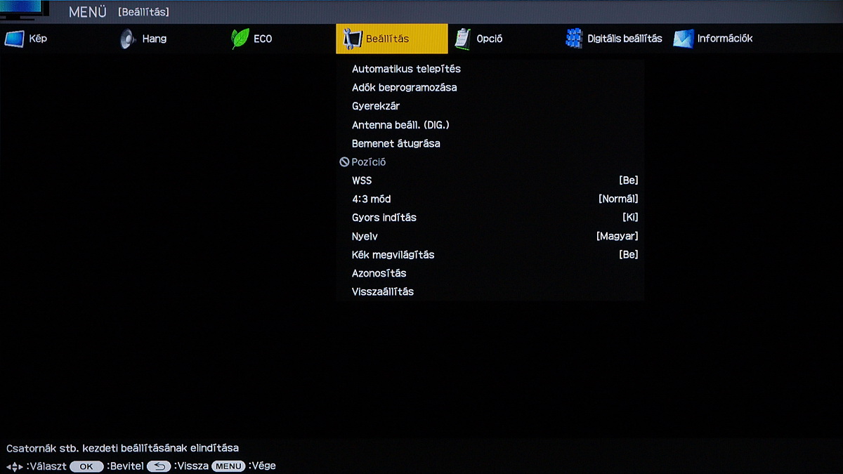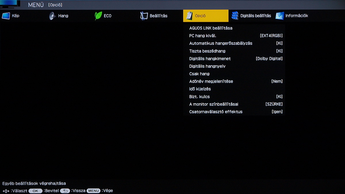 A menü a szokásos Sharp menü, amely gyakorlatilag évek óta változatlan. Semmi csicsa, ennek ellenére jól használható.