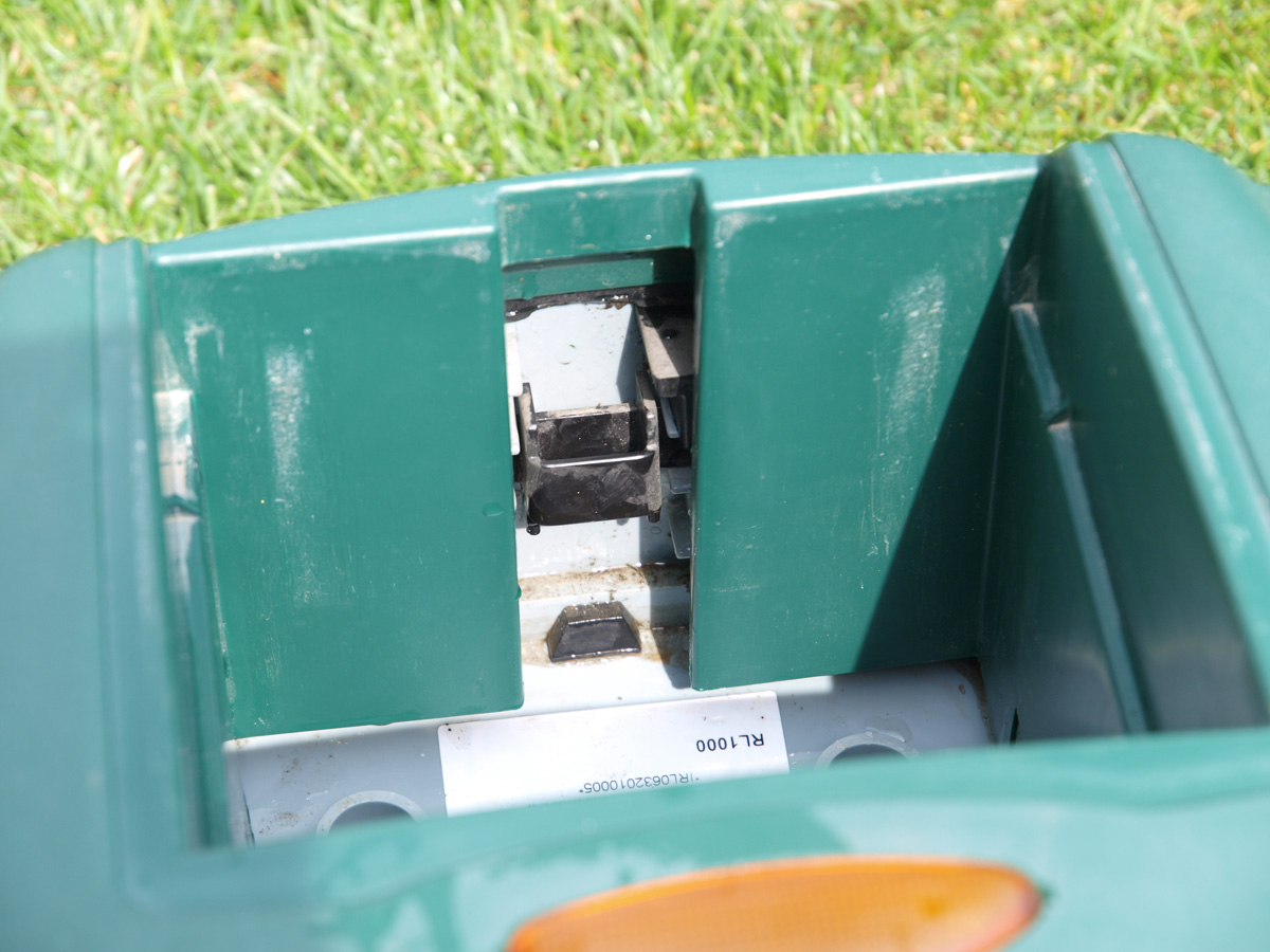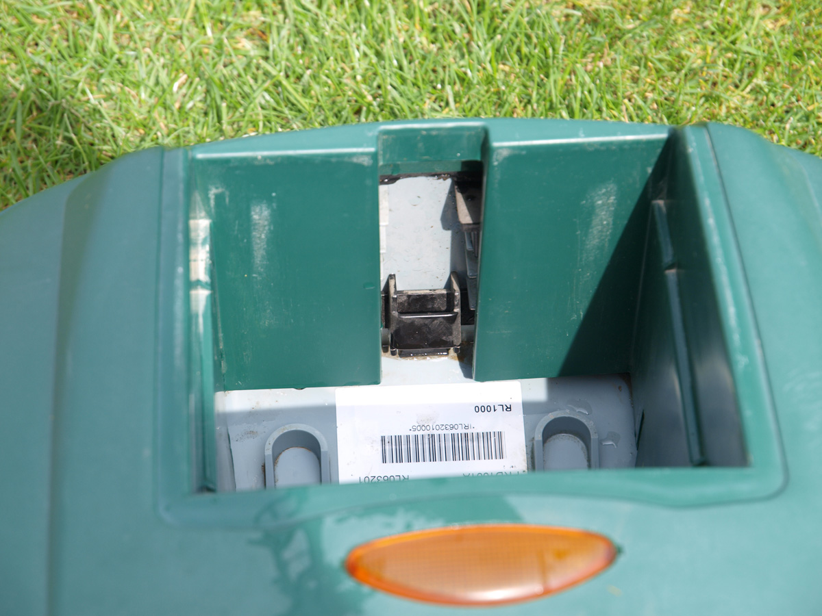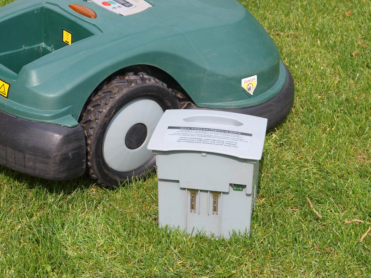A Robomow RL1000 egyik meghatározó sajátossága, hogy könnyedén lehet benne akkumulátort cserélni. Az akkumulátor ház szabványos, gondozásmentes ólom akkut rejt, és egy tartalék darab beszerzésével duplájára is növelhető a lenyírandó terület mérete (persze ilyenkor szükség van az emberi beavatkozásra).