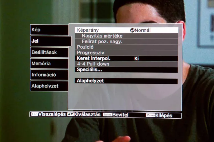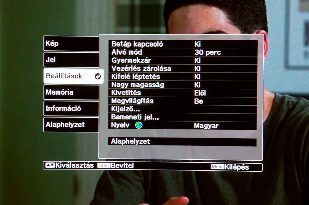 A projektor specifikációiban olvasható 200 000:1-hez kontraszt (ami a tévékhez hasonlóan dinamikus kontrasztot jelent, a projektor ugyanis jelenetről jelenetre állít a fényerőn) előállításában segédkező aktív íriszt két fokozatban, illetve teljesen ki is kapcsolhatjuk. Van kontraszterősítés, külön fokozatok a bőrszín optimálissá tételéhez, képkockainterpoláció, 4-4/2-3 Pull-down, Overscan és többféle zajszűrés is – amíg mindent végigpróbálgatunk, könnyen eltelik 1-2 nap.
