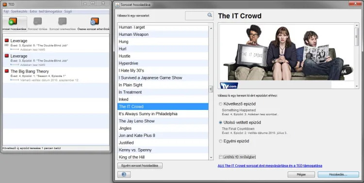 A TED konfigurálása igazából nem bonyolult, mindössze annyi a teendőnk, hogy kiválasztjuk a listából azokat a sorozatokat, amiket szeretnénk letölteni, illetve minden show esetében ki kell választanunk az első letöltendő epizódot is.