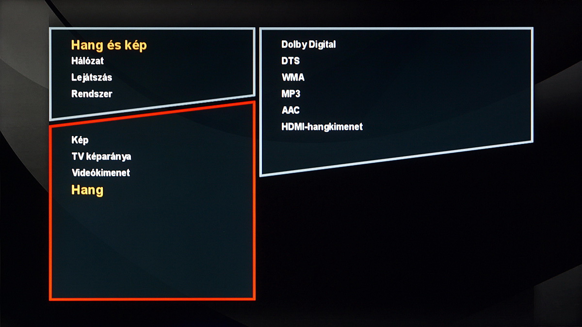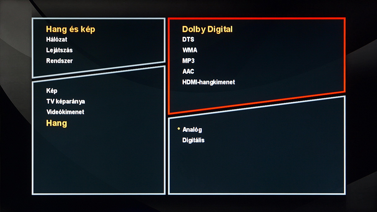 A beállításokon gyorsan végig lehet szaladni, részben az átlátható kezelőfelület miatt, részben pedig azért, mert túl sok beállítási lehetőség nincsen – viszont minden, ami fontos, az megtalálható. HDMI kimeneten keresztül automatikus, 480, 720 illetve 1080 soros progresszív illetve 1080 soros váltottsoros felbontást választhatunk például. A képfrissítési gyakoriság szintén lehet automatikus – ha a 24p-t is használni szeretnénk, akkor mindenképpen ezt az opciót kell kijelölnünk. Emellett PAL beállítással 50, NTSC beállítással 60 Hz-es fix képfrissítést és kérhetünk. A hangkezelés kitűnő, MP3, WMA, AAC, AC3 és DTS hangra külön megadhatjuk, hogy digitális vagy analóg formában szeretnénk a kimenetre küldeni.