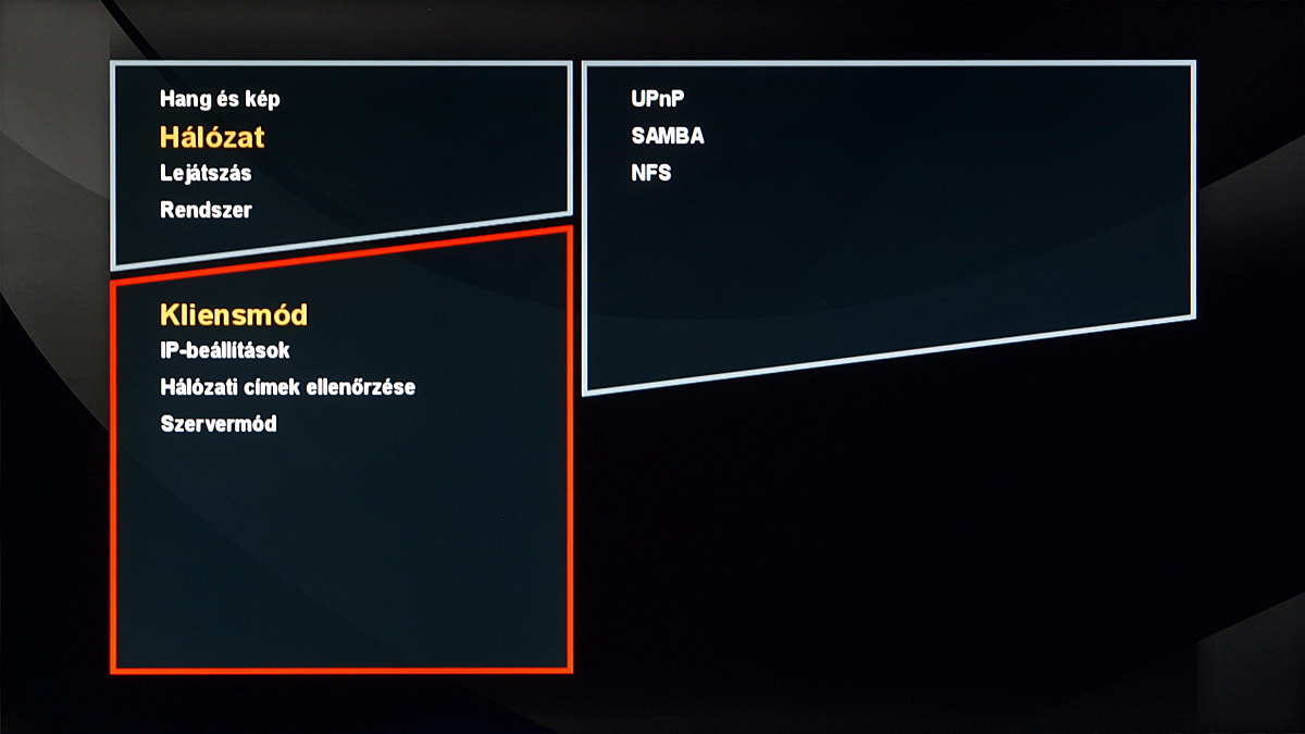 A hálózati beállításoknál az UPnP, Samba és NFS kapcsolatokat állíthatjuk be – utóbbi kettőre akkor lehet szükségünk, ha hálózati kapcsolaton keresztül az MKV fájlokat is el szeretnénk érni, ezek ugyanis UPnP-n keresztül általában nem látszódnak. A Samba szervereket a Venice automatikusan megtalálja, az NFS hálózati helyeket viszont kézzel kell beállítanunk. (Windowshoz kapunk NFS fájlszerver programot a V13 HD mellé, amit a gyártó honlapjáról tölthetünk le.)