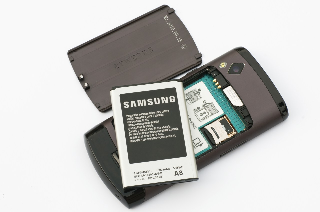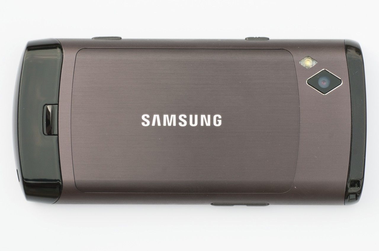 Ha megfordítjuk a mobilt, elénk kerül az igényes, fémből készült hátsó fedél, amelyet egy kis kallantyú elhúzásával nyithatunk ki. Alatta az 1500 mAh-ás akkut találjuk, amelyet el kell távolítanunk ha a microSD kártyához vagy a SIM kártyához hozzá szeretnénk férni. A hátlap Samsung felirata nem festett, hanem csiszolt, így nem kell félnünk kopásától. A hátsó keret felső részének bal oldalán található az 5 Mpixeles kamera objektívje és a hozzá tartozó LED-es világítás – mindkettő egy rombusz alakú nyílásban.