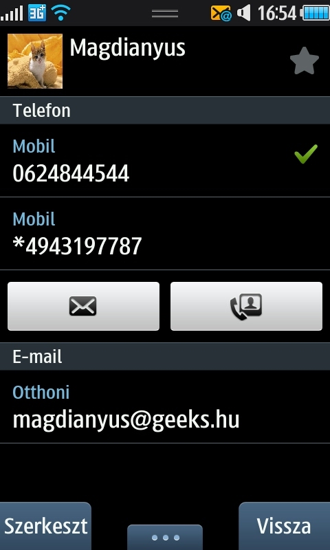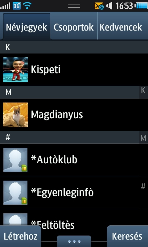 Ha olyan számot kezdünk beírni, ami már szerepel a telefonkönyvben, a készülék automatikusan felajánlja, így be sem kell fejeznünk, azonnal tárcsázhatunk. A számbillentyűk alatti három gomb segítségével eldönthetjük, hogy sima hanghívást, SMS-t vagy videohívást indítunk.
