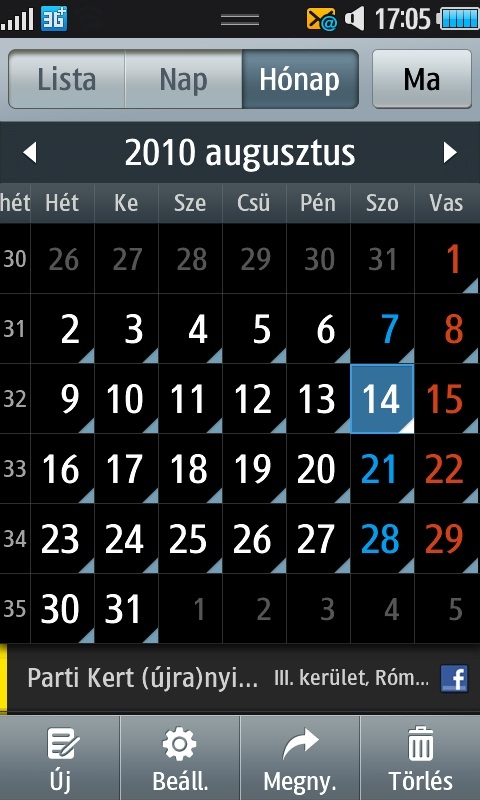 Az alapvető „menedzserkalkulátor-szolgáltatások” területén a Wave nem okoz csalódást, hiszen a naptár rész nagyon jól sikerült. A felső gombok segítségével villámgyorsan válthatunk a havi és napi bontás között, illetve egy áttekintő, csak az események listáját mutató nézet is rendelkezésre áll. A naptárat szinkronizálhatjuk a Facebookkal és az Exchange-dzsel is.