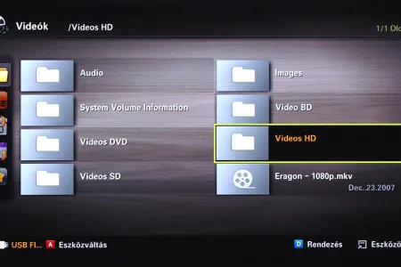 Korábbi cikkeinkben már többször is leírtuk, hogy jelenleg a Samsung az egyetlen olyan tévégyártó, aki olyan médialejátszót pakol a tévébe, ami nem ijed meg a DTS hangsávoktól sem. Ez pedig nagyon megnöveli annak az esélyét, hogy egy letöltött filmet el tudjunk indítani. (Az igaz, hogy a sorozatok nagyfelbontású verziói csak AC3 hangot kapnak, viszont a filmek nagyobbik része DTS hangsávot tartalmaz.) Ezzel együtt sajnos még mindig nem tökéletes a dolog, mert az L5 beállítással tömörített H.264 videókat a tévé nem tudja kezelni, illetve nagy bitráta mellett akadozást is tapasztaltunk. A szokásos megszorítások is megmaradtak, így a C490-es sem kezeli a VC-1-es WMV-ket, az AVCHD kódolású ts fájlokat, a GMC-vel tömörített DivX és XviD videókat, az M2TS konténereket és a FLAC-ot sem, a rippelt DVD-ket pedig csak menü nélkül, a fájlok kézi kiválasztásával nézhetjük meg.
