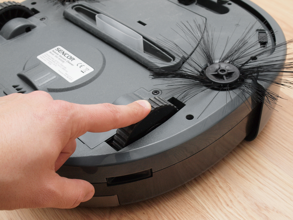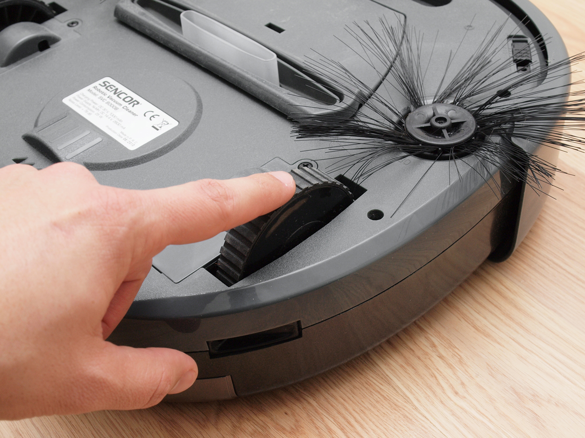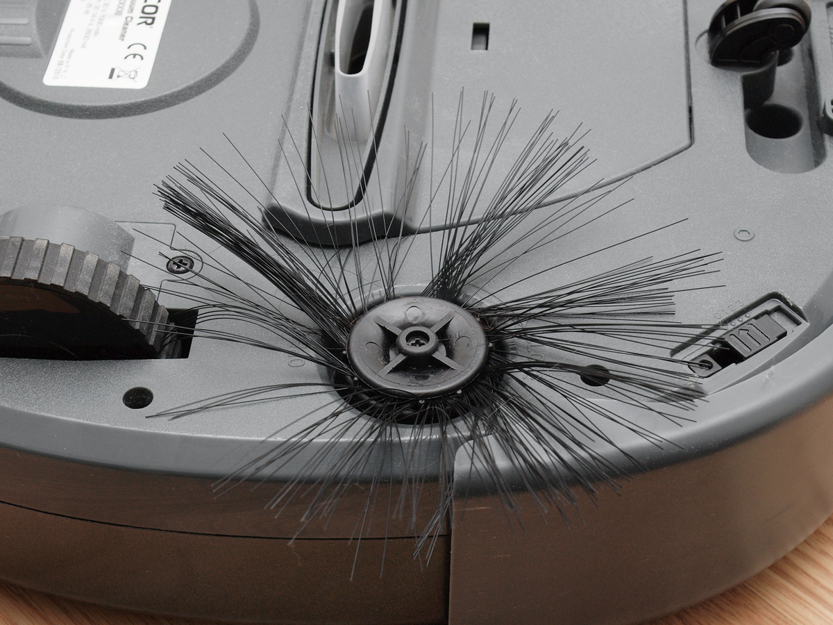 Az SVC8000 robot aljának legérdekesebb részei az oldalt elhelyezett bajuszkefék. Mivel a takarítást egy 7,5 cm széles szívócsonk végzi, fontos hogy a lehető legtöbb kosz, por abba a sávba essen, ahol ez a csonk mozog. Itt kapnak szerepet ezek a kefék, amik jó esetben közel 40 cm széles sávból tudják a szívócsonk alá hajtani a koszt.