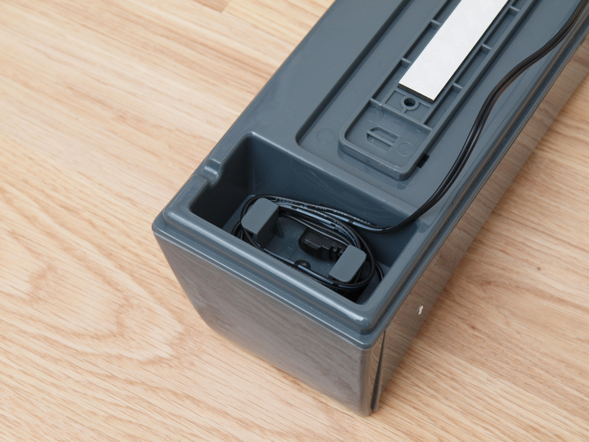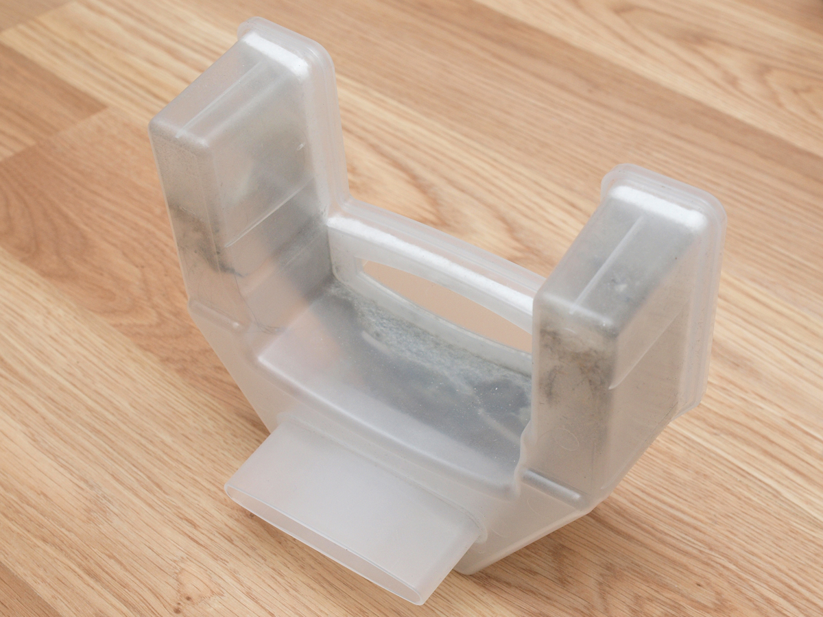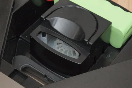A portartály U alakú formája kissé meglepő, de a robot belsejét látva érthető, hogy sok más lehetősége nem volt a tervezőknek. Olyat viszont még valóban nem láttunk, hogy a portartály szívócsonkja egészen a robot aljáig ér.