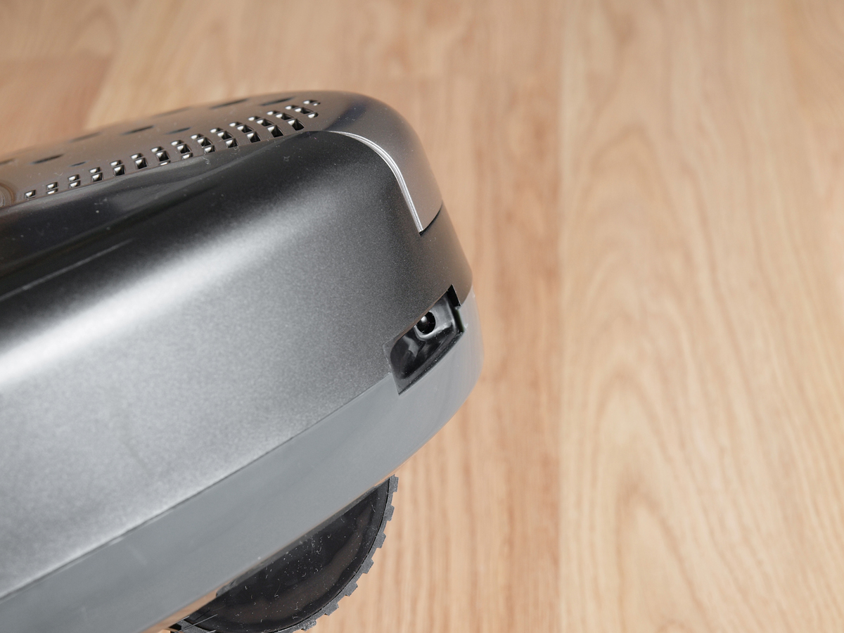 A robotot természetesen magasság érzékelőkkel is ellátták, hogy a lépcsőket külön ne kelljen elkeríteni. Érdekesség, hogy a nyílást egy elhúzható ajtó takarja, amivel az érzékelő hangolható az igényeknek megfelelően. Nálunk a gyári (második) állásban kiválóan működött.