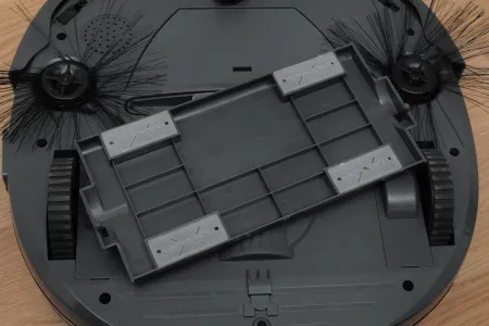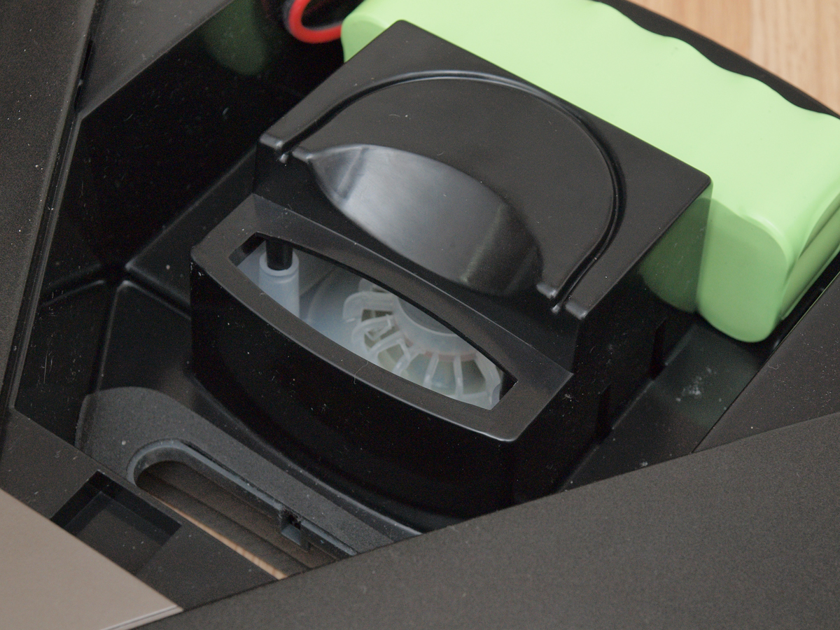 A portartály egyszerű, de funkcionális kialakítást kapott. A szívócsonk végén egy automatikusan visszazáródó lap gátolja meg a felszívott kosz visszahullását, a környezetbe visszajutó levegőt pedig egy egyszerű szűrő tisztítja. A tartály mérete elég nagy, hogy a robot egy átlagos lakásban akár egy hétig is takaríthasson a beavatkozásunk nélkül.