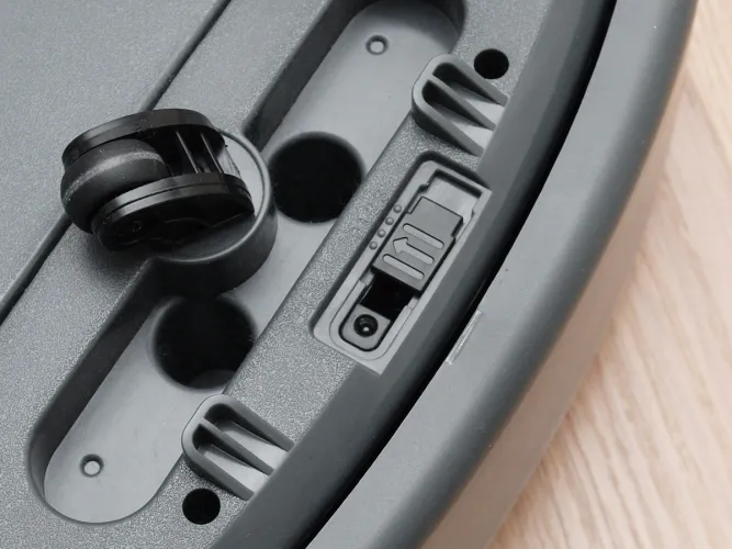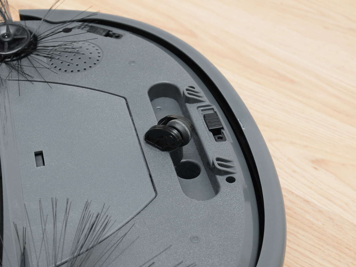 A robot oldalán körben 3 blokkban találunk említésre méltó részegységet. A legkézenfekvőbb a jobb oldalra tett főkapcsoló és töltő csatlakozó. Ez utóbbi akkor lehet lényeges, ha a robotot a dokkoló nélkül szeretnénk használni. A következő a robot hátuljára tett két töltő érintkező. Ezeket nyomja neki a robot a dokkolón lévő fém lapoknak, hogy meginduljon a töltés. Az érintkezőket jobban megnézve látható, hogy közöttük egy infravörös érzékelőt rejtettek el. Ezzel navigál be a robot a dokkolóba. A harmadik részegység szintén egy infravörös érzékelő, ami a dokkoló megkeresésében nyújt nélkülözhetetlen segítséget.