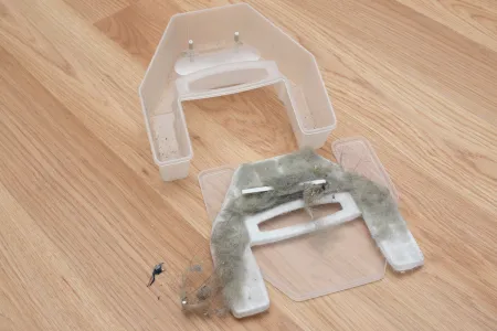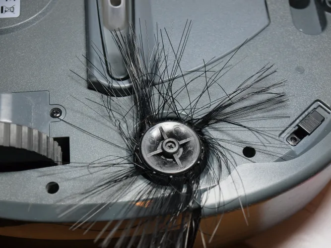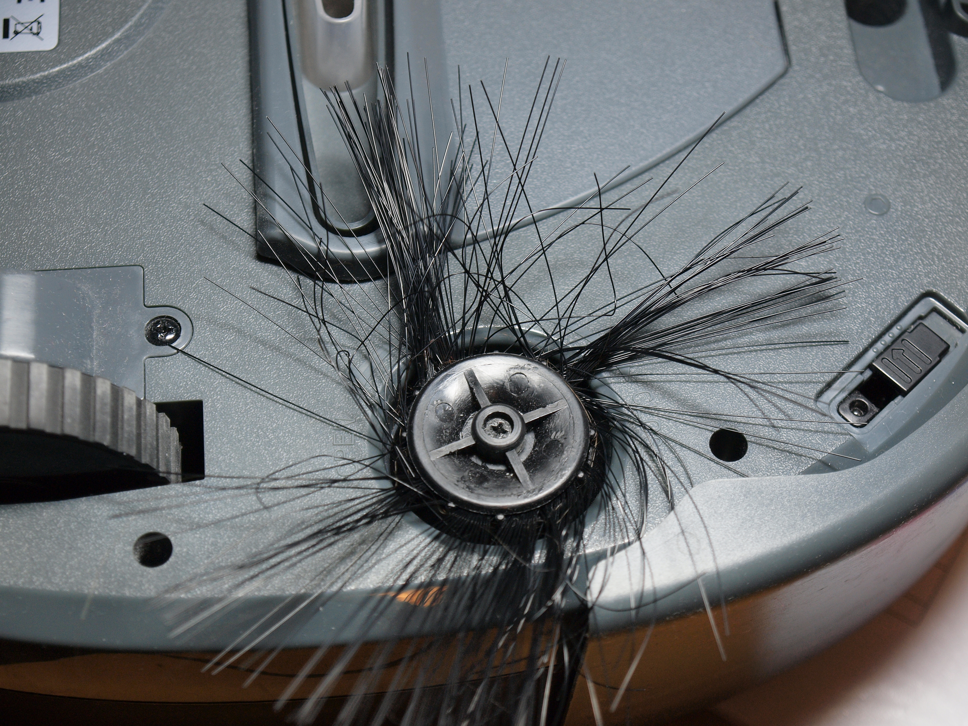 A gép aljáról hiányzó keféket ugyan nem kell takarítani, de az oldalkefe szálai meglepően össze tudtak gubancolódni. Ezt 2-3 hetente rendbe kell tenni, és csak reméljük, hogy nem szakadnak el túl hamar.