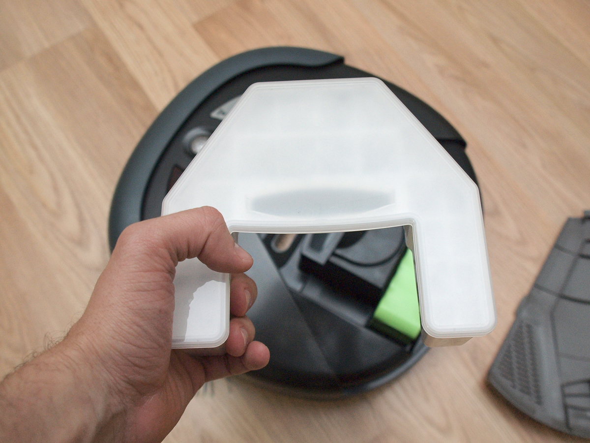 A portartály ürítése egyszerű feladat, de nem kapunk olyan jó segítséget, mint a drágább Samsung Navibotoknál. Az alsó hengeres kefék elhagyása miatt a robottal alapvetően kevesebbet kell foglalkozni, mert az alsó kefék nem szedik össze a hajszálakat.