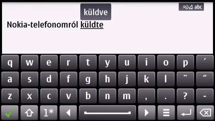 Szövegbevitelre kétféle billentyűzet áll rendelkezésre. Ha álló helyzetben van a készülék, akkor a régi numerikus telefonbillentyűzetet kapjuk meg, fektetve pedig a QWERTY-s változatot. Ez utóbbi jól működik, de a más rendszerekről érkezőknek megszokást igényel, hogy például az ékezetes karakterek előhívásához először be kell ütnünk az ékezetet (a jobb oldalon található gombokkal), majd az alapbetűt. Külön billentyűzetet kell előhívnunk a szimbólumokhoz és a számokhoz. Ezzel igazából nincs baj – azzal viszont már igen, hogy bárhova is kell szöveget beírnunk, egy külön képernyő nyílik meg a szövegbox számára.