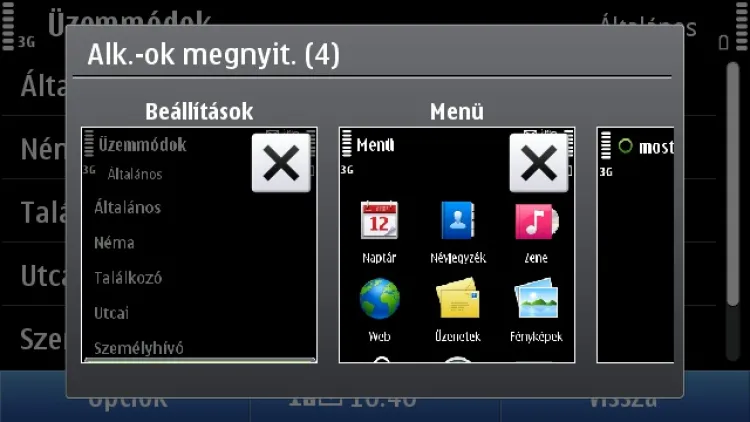 Az alapszolgáltatások közé tartozik még a középső gomb hosszú lenyomásával elérhető Feladatkezelő, ami most már a futó alkalmazások előnézetét is megjeleníti.