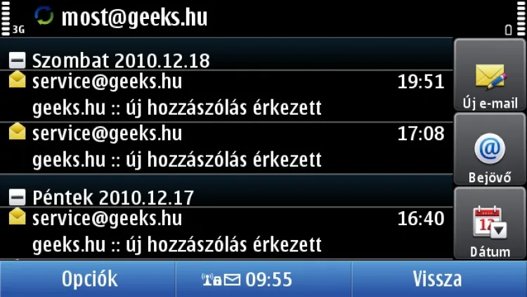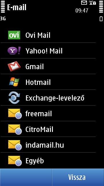 Az integrált levelezőkliens kifejezetten intelligens, rengeteg ismert szolgáltatáshoz csatlakozhatunk vele, az ismeretlenekből pedig POP3, IMAP és Exchange fiókokhoz is kapcsolódhatunk (egyszerre többhöz is). A letöltési opciók testreszabhatósága jó, megadhatjuk, hogy mely napokon és milyen időközökben kérje le a készülék a leveleket, kétféle órarendet (munkanapra, nem munkanapra) viszont nem állíthatunk be.