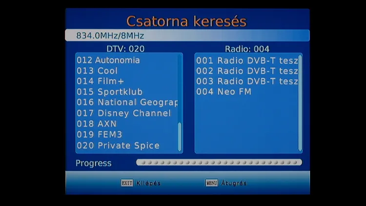 A harmadik menü a csatornakeresés (auto és manuális keresés is van), ide alapesetben nem kell külön ellátogatni, mert az első bekapcsolásnál megcsinálunk minden olyan dolgot, ami amúgy ebből a menüből lenne elérető.