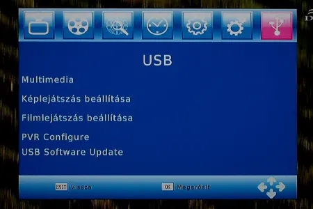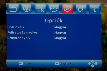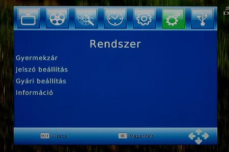 A menürendszer egy az egyben azonos a korábban nálunk járt ATD STB-838 menüjével, így ezúttal is egy nagyon egyszerű, nem túl látványos, de cserébe legalább jól áttekinthető kezelőfelületet kapunk, amelyben a fent elhelyezett hét ikon segítségével érhetjük el a beállítási lehetőségeket. A felületet a felső ikonok miatt akár grafikusnak is csúfolhatjuk, de az ábrák felbontása miatt az élmény messze elmarad attól, mint amit mondjuk egy márkás gyártó Blu-ray lejátszójának nyomkodása közben tapasztalhatunk meg.