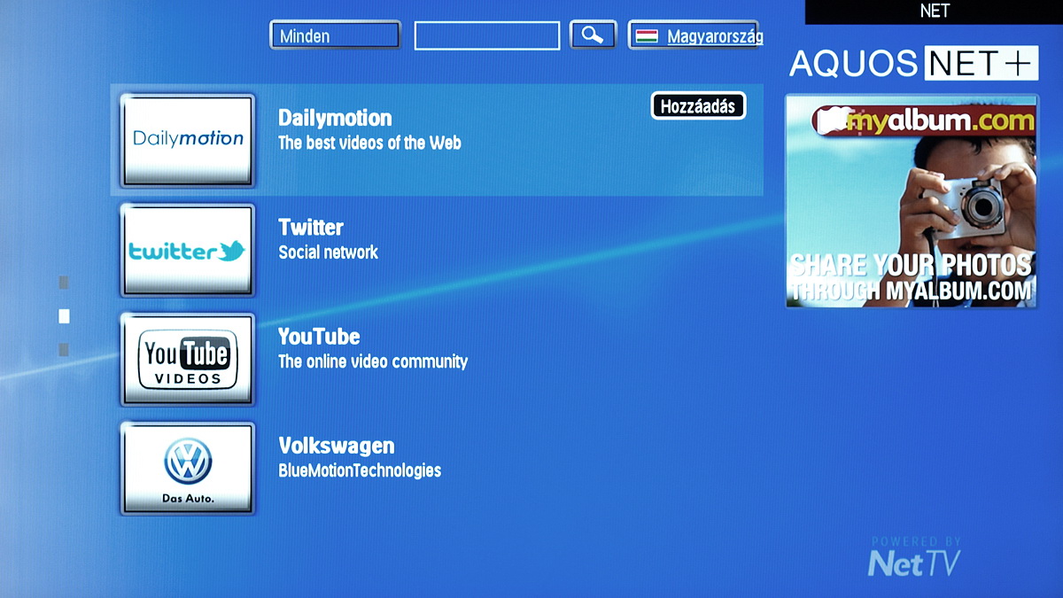 Bár NetTV helyett AQUOS NET+-nak hívja a Sharp „saját” internetes megoldását, a platform valójában a Philips platformja, ezt licenceli ugyanis a japán gyártó. A netes részleg különlegessége az Operán alapuló, a flash hiányát leszámítva teljes értékű böngésző. Kezelése sajnos a távirányítóval nem éppen kényelmes, de cserébe a weboldalak megjelenítése majdnem hibátlan.