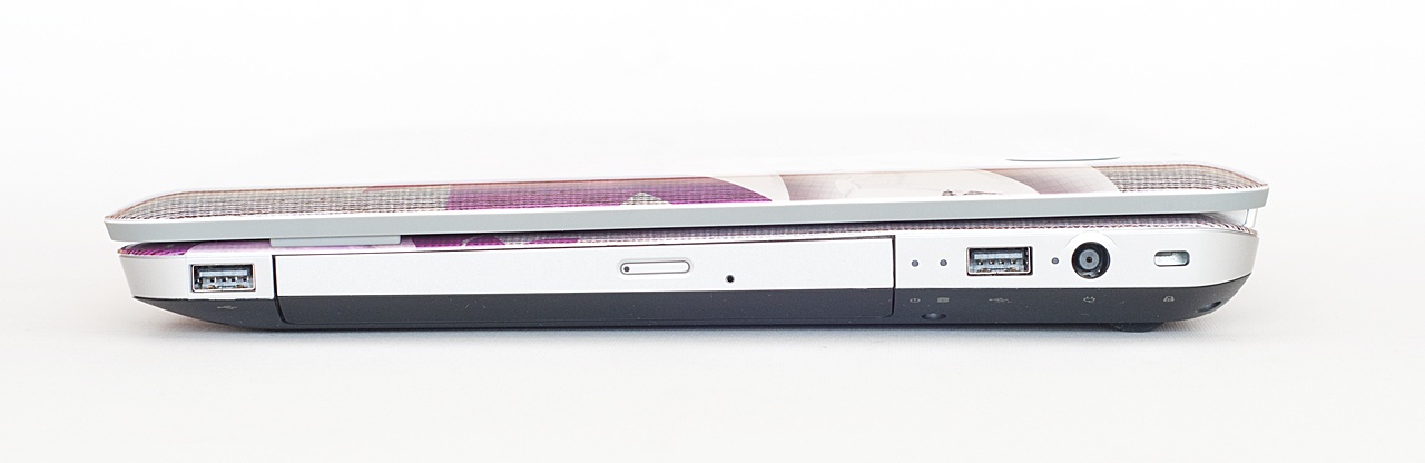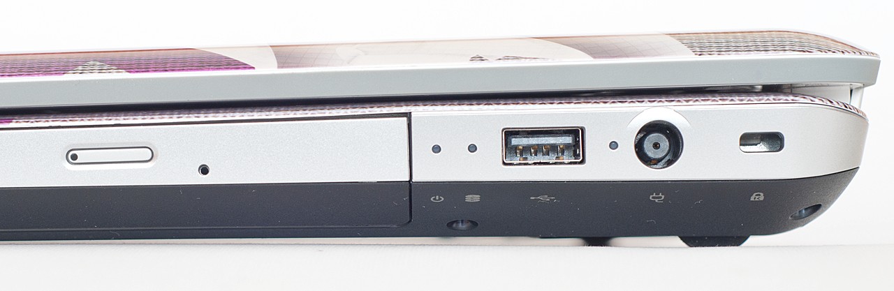 A jobb oldalon, hátulról előrefelé haladva először a Kensington zár nyílását láthatjuk, ezután jön a hálózati töltő (mellette a hozzátartozó apró visszajelző LED-del), majd egy USB port következik. A következő két apró jelzőfény a merevlemezről és az üzemállapotról tudósít minket, majd jön az optikai meghajtó és végül egy újabb USB porttal zárul a sor.
