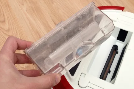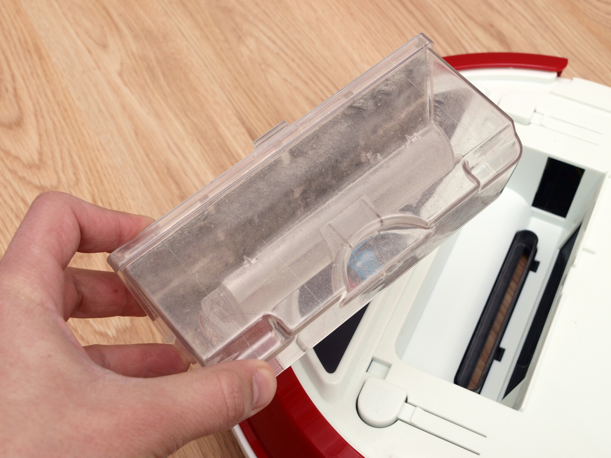 A porszívózás erősségéről már írtuk, hogy jó, de ez csak egy része a takarításnak. A szeméttartó és az abba a nagyobb szemetet besöprő kefe hiányában a nagyobb hulladékdarabok könnyen a földön maradhatnak. Ezeket, illetve az ott maradó port még a törlőkendő sem szedi össze, hiszen nincs.
